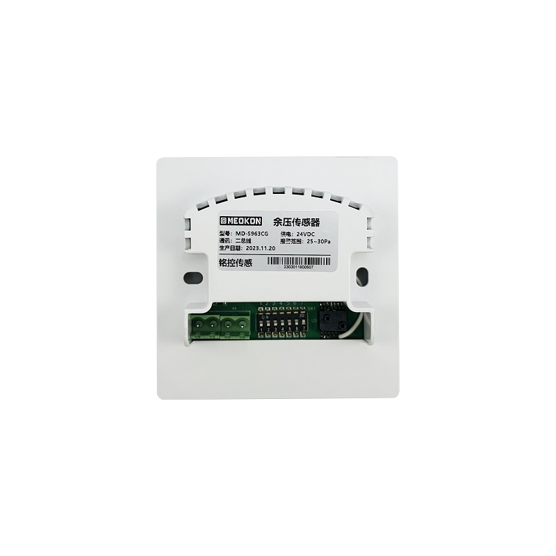 主要特點:采用微差壓傳感器,采用二總線通訊及供電,86盒設計,可明裝或暗裝余壓傳感器