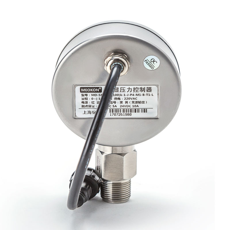 直徑80mm,0.5級(jí),徑向安裝,LED數(shù)碼管顯示,304不銹鋼材外殼及接頭。 內(nèi)置繼電器,可控制低壓閉合高壓斷開(kāi)或反向控制,多種輔助控制功能。