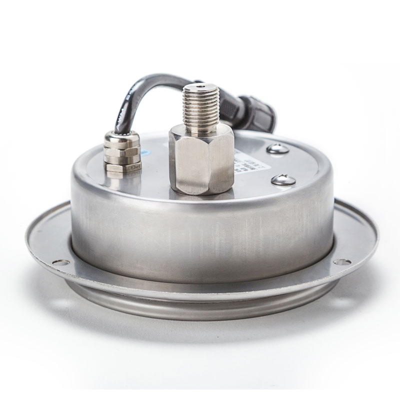 直徑100mm,軸向帶邊安裝,304不銹鋼外殼。 內(nèi)置繼電器,接線方法同電接點壓力表,多種輔助控制功能。
