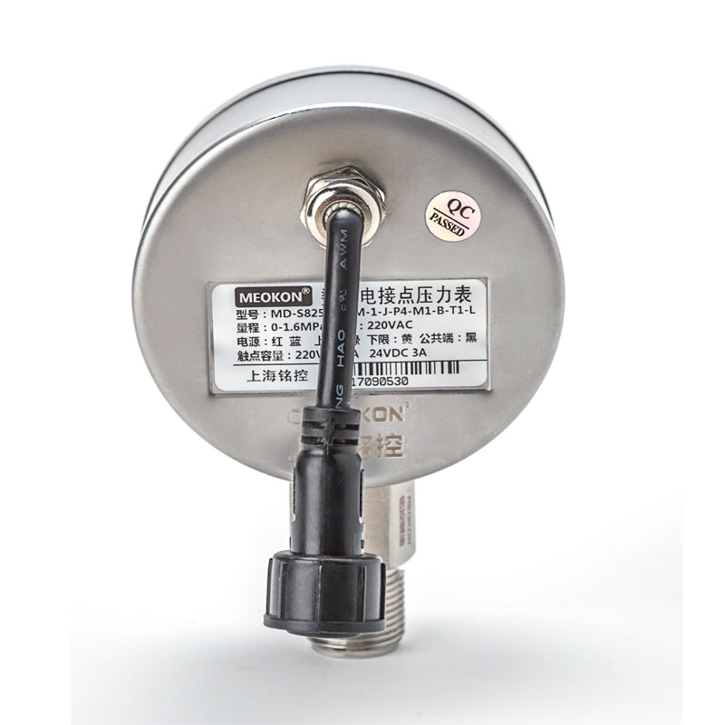 直徑80mm,徑向安裝,304不銹鋼外殼。 內(nèi)置繼電器,接線方法同電接點壓力表,多種輔助控制功能。