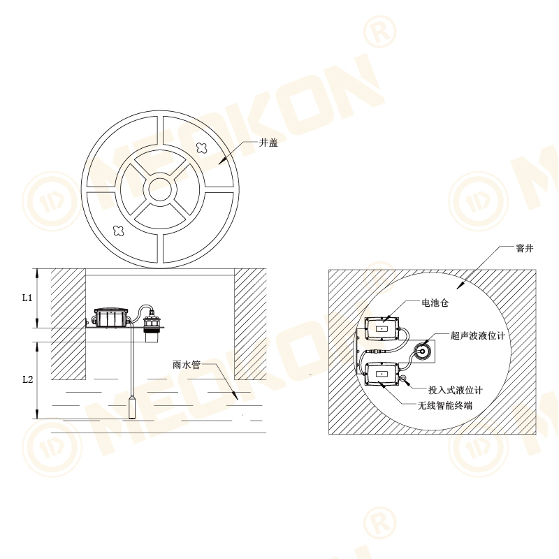 該系列采用了超聲波液位計和投入式液位計雙傳感器終端對窨井水位進行監(jiān)測,既保證了水位的準確性,同時也增加了設(shè)備的可靠性。