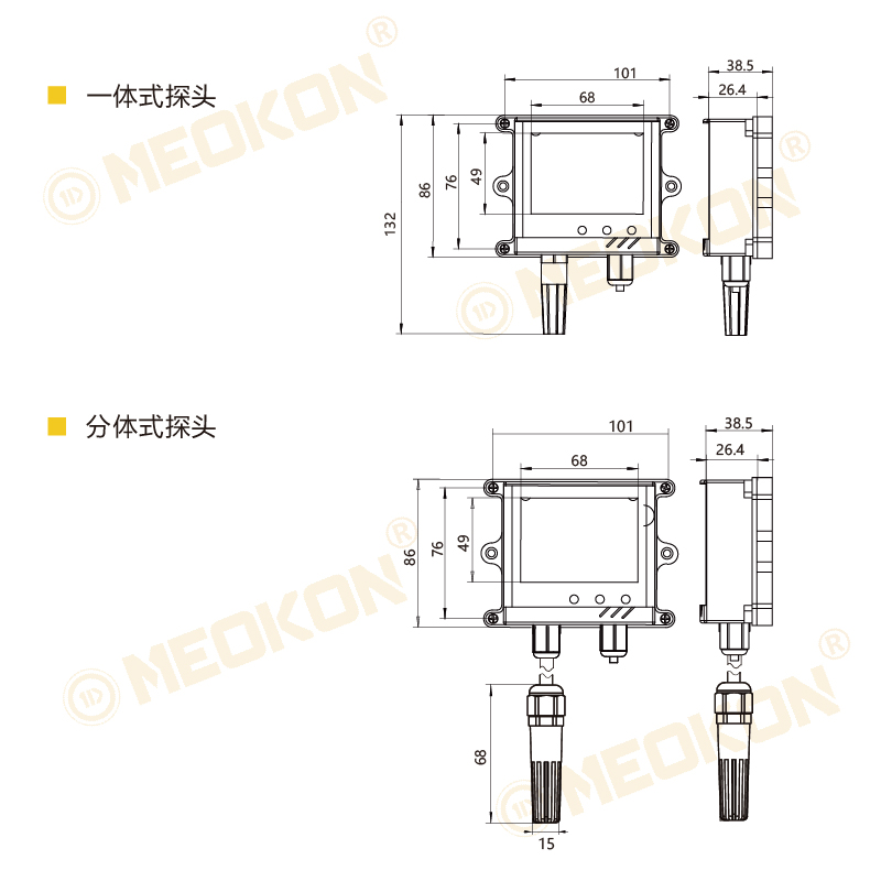 探頭安裝方式 一體式探頭/分體式探頭1米/分體式探頭2米